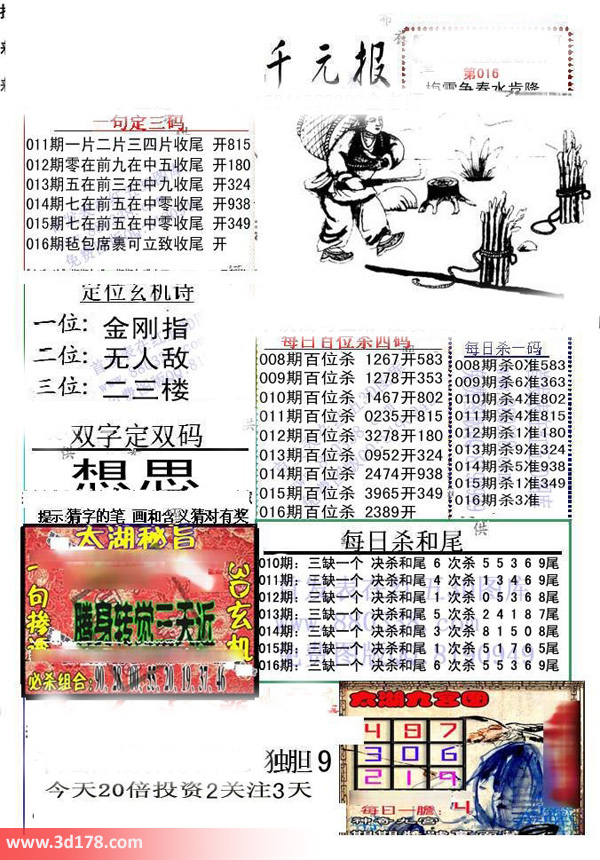 福彩3d第2016016期布衣千元报图详情分析如下: