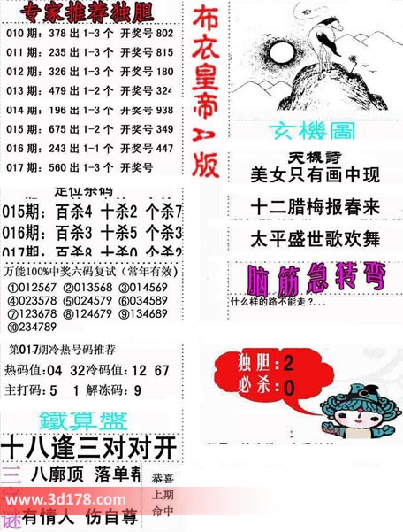 福彩3d第2016017期布衣天皇帝A版布衣专家独家推荐: