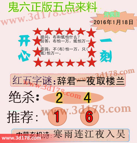 3d鬼六图库第16018期鬼六正版五点来料图: