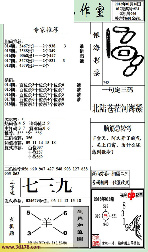 3d第2016018期银海布衣图详解: