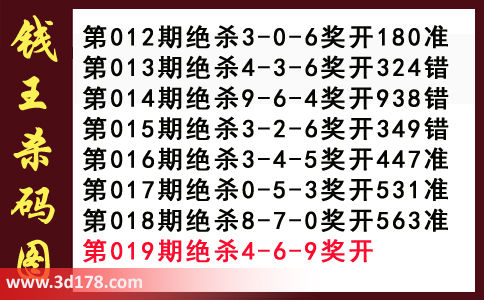 近期3d钱王杀码具体详情: