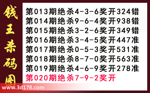 近期3d钱王杀码具体详情: