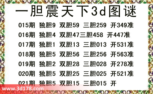 一胆震天下三胆图库由3D之家3D图库频道原创,仅供彩民参考,温馨提供。