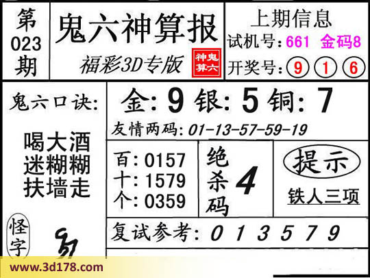3d第16023期鬼六神算报为您推荐鬼六口诀: