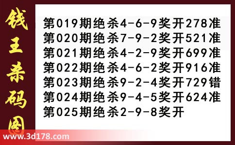 近期3d钱王杀码具体详情: