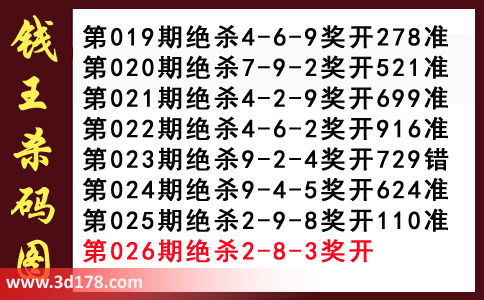近期3d钱王杀码具体详情: