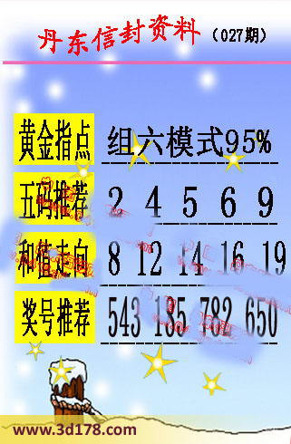 第2016027期丹东信封资料推荐:黄金指点:组六模式95% 五码推荐:24569和值走向:8 12 14 16 19奖号推荐:543 185 782 650该丹东图库由3D之家3D图库频道原创,仅供彩民参考,温馨提供。