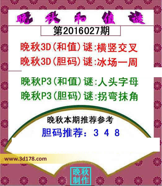 晚秋p3(和值)谜:人头字母