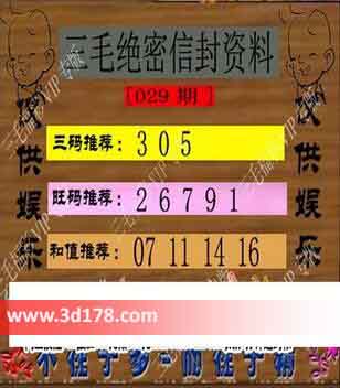 福彩3d第029期三毛绝密信封资料图详解: