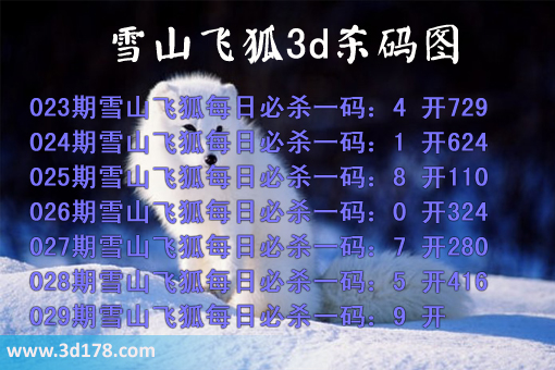 023期雪山飞狐每日必杀一码:4 开729