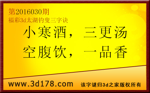 福彩3d第2016030期太湖图库解字谜详解: