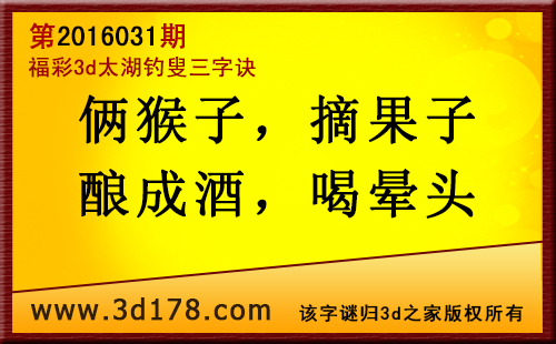 福彩3d第2016031期太湖图库解字谜详解: