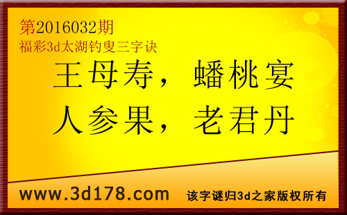 福彩3d第2016032期太湖图库解字谜详解: