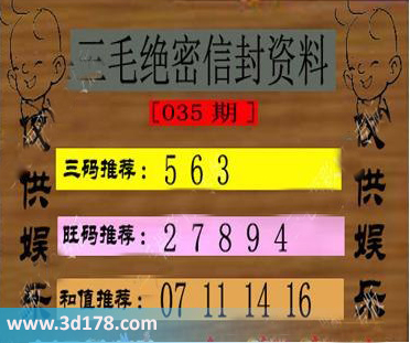 福彩3d第035期三毛绝密信封资料图详解: