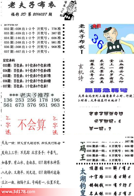 3d第2016037期老夫子布衣预测今日必下胆码图: