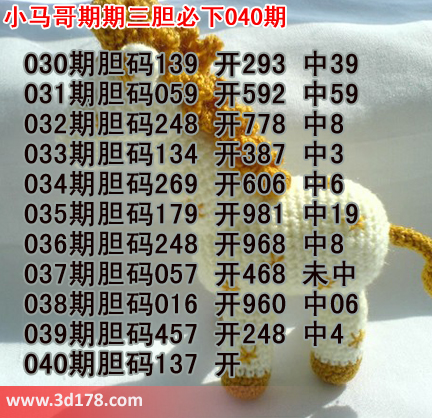 3d第040期小马哥三胆预测如下: