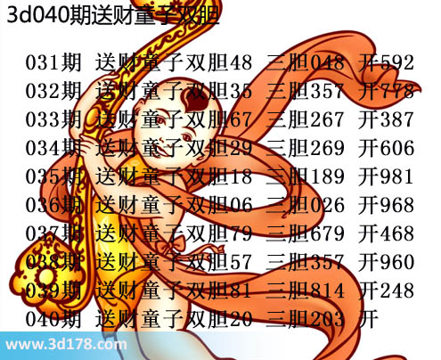 胆码图库3d第2016040期送财童子图: