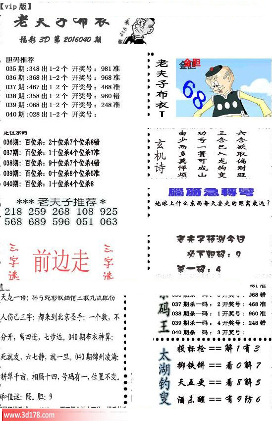 3d第2016040期老夫子布衣预测今日必下胆码图: