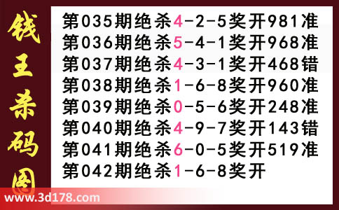 近期3d钱王杀码具体详情: