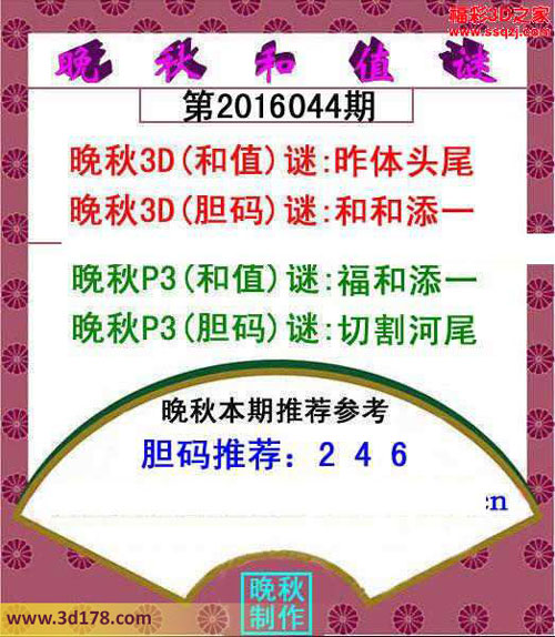 晚秋3D(胆码)谜:和和添一