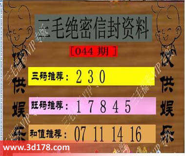 福彩3d第044期三毛绝密信封资料图详解: