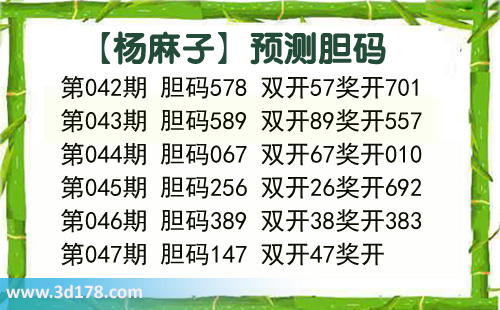 3d第2016047期杨麻子胆码推荐: