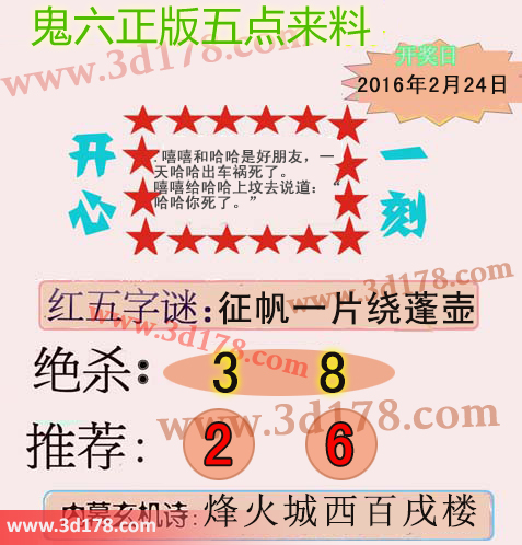 3d鬼六图库第16048期鬼六正版五点来料图: