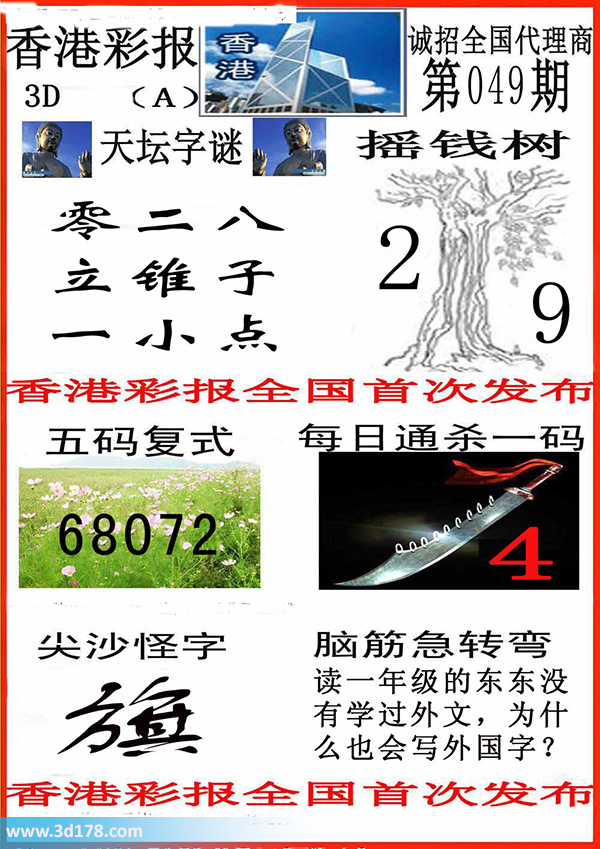 零二八,立锥子,一小点。摇钱树:2 9五码复式:68072每日通杀一码:4脑筋急转筋:读一年级的东东没学过外文,为什么也会写外国字?该香港彩报由3D之家3D图库频道原创,仅供彩民参考,温馨提供。