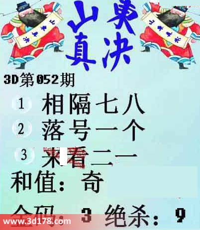 福彩3d第052期山东真诀图如下所示: