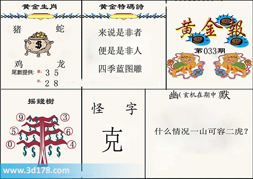 福彩3d第2016053期3d黄金报为您推荐黄金特码:3d之家第2016053期3d黄金报详细内容如下:黄金特码诗:来说是非者,便是是非人,四节蓝图雕。黄金生肖:猪蛇鸡龙尾数推荐:单:3 5 双:2 8摇钱树:950 364怪字:克幽默(玄机在期中):什么情况一山可容二虎?黄金报图由3D之家3D图库频道原创,仅供彩民参考,温馨提供。