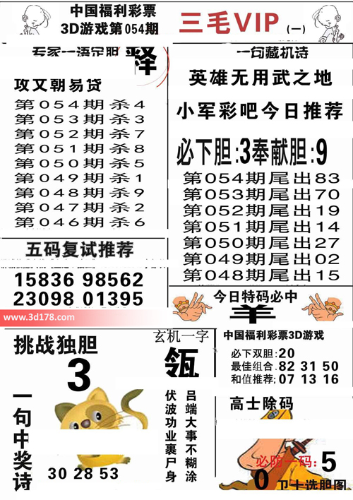 第2016054期3d三毛图库为您解读本期专家一语定胆: