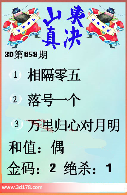 福彩3d第058期山东真诀图如下所示: