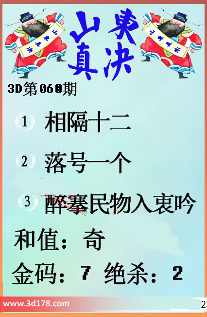 福彩3d第058期山东真诀图如下所示: