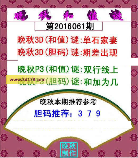 晚秋p3(胆码)谜:和加为几