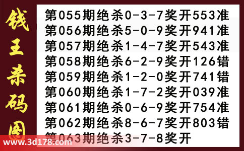 近期3d钱王杀码具体详情: