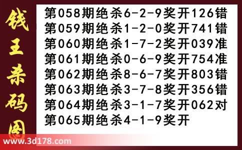 近期3d钱王杀码具体详情: