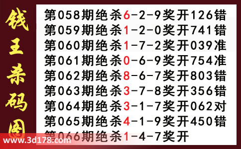 近期3d钱王杀码具体详情: