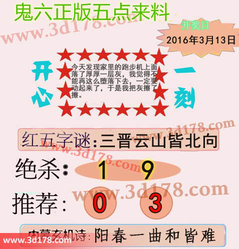 3d鬼六图库第16066期鬼六正版五点来料图: