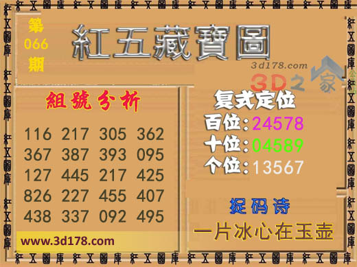 3d之家3d红五藏宝图第206066期为您推荐复式定位、捉码诗以及组号分析: