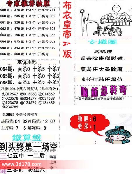 福彩3d第2016066期布衣天皇帝A版布衣专家独家推荐: