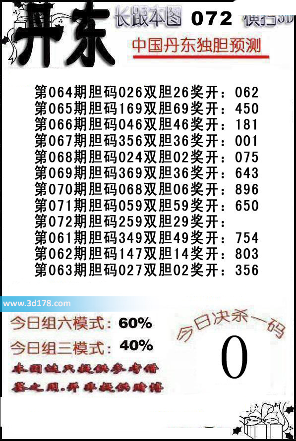 福彩3d第2016072期丹东解析: