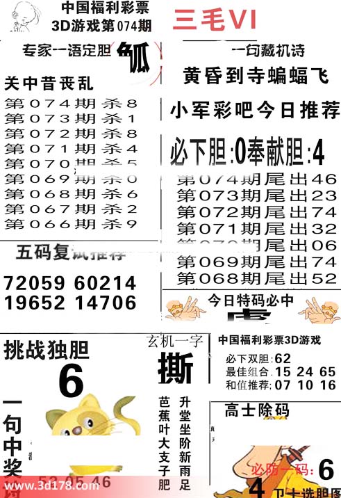 第2016074期3d三毛图库为您解读本期专家一语定胆: