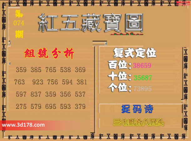 3d之家3d红五藏宝图第2016074期为您推荐复式定位、捉码诗以及组号分析: