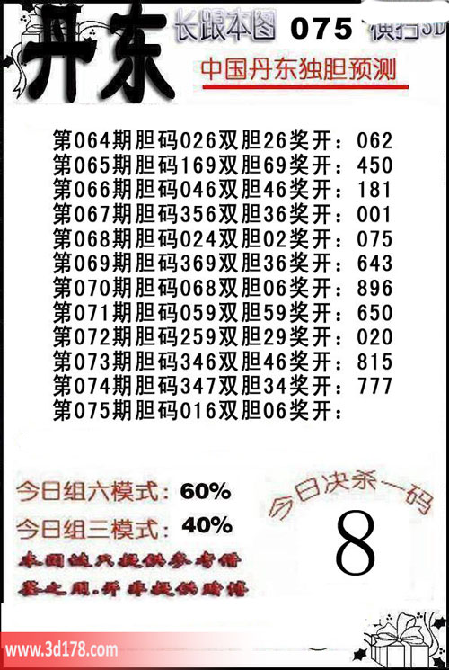 该丹东图库由3D之家3d图库频道原创,仅供彩民参考,温馨提醒。