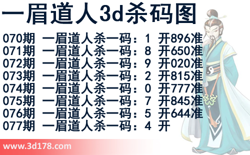 该一眉道人3d杀码图由3D之家3D图库频道原创,仅供彩民参考,温馨提供。