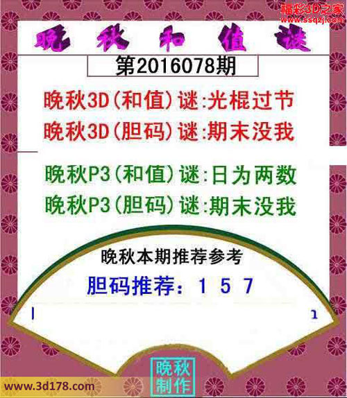 晚秋3D(胆码)谜:期末没我