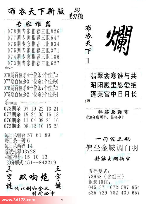 2016078期福彩3d布衣天下新版: