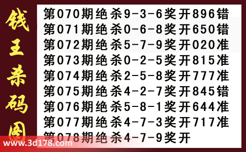 近期3d钱王杀码具体详情: