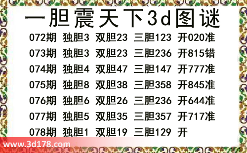 本期一胆震天下3d图谜