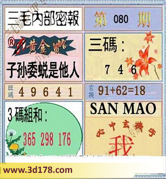 福彩3d第080期三毛内部密报综合推荐如下:3d之家三毛图库第080期三毛内部密报图详解: